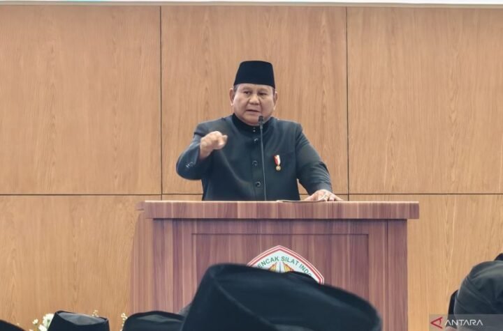 Presiden Prabowo Subianto yang juga menjabat sebagai Ketua Umum Pengurus Besar Ikatan Pencak Silat...