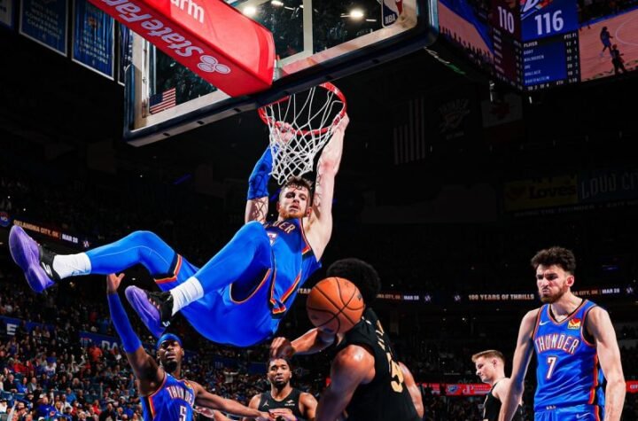 Oklahoma City Thunder mengalahkan Cleveland Cavaliers 121-113 dalam lanjutan NBA di Oklahoma City, Senin...