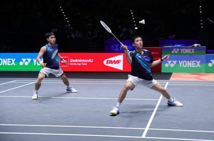 Ganda putra Korea Selatan Kim Won-ho/Seo Seung-jae menutup rangkaian final All England Open 2026...