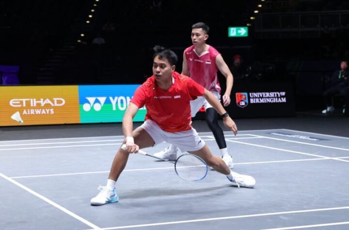 Pebulu tangkis ganda putra Indonesia Raymond Indra/Nikolaus Joaquin terhenti di babak semifinal All England...