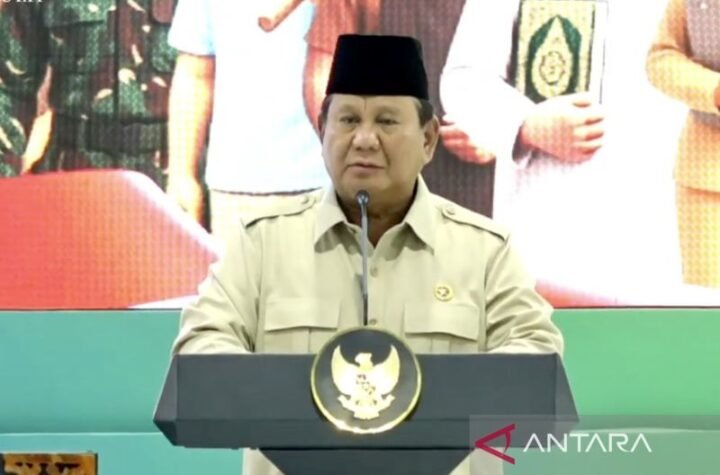Presiden Prabowo Subianto memberi selamat kepada Menteri Pemuda dan Olahraga Erick Thohir atas prestasi...