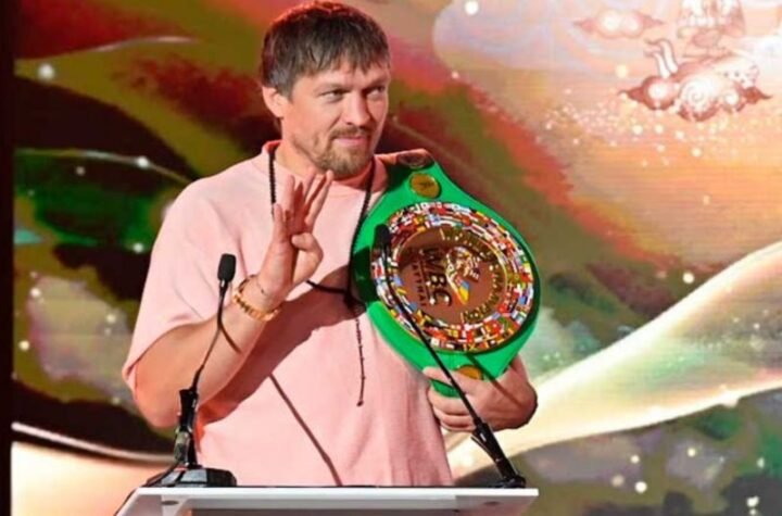 Juara dunia kelas berat (90,7 kg) yang tak terbantahkan Oleksandr Usyk, saat menghadiri konvensi...