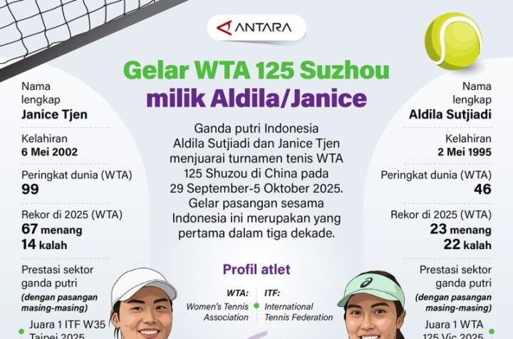 Ganda putri Indonesia Aldila Sutjiadi dan Janice Tjen menjuarai turnamen tenis WTA 125 Shuzou...