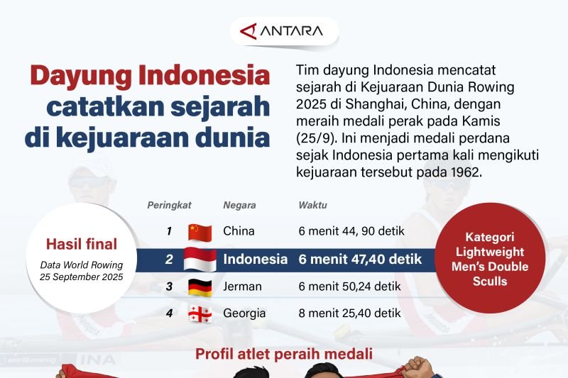 Olah Raga Dayung Indonesia catatkan sejarah di kejuaraan dunia redaksi 28 September 2025 Tim dayung Indonesia mencatat sejarah di Kejuaraan Dunia Rowing 2025 di Shanghai, China, dengan meraih medali perak …. Sumber : All Sport – ANTARA News Continue Reading Previous Bupati: Friendship Run perkuat “sport tourism” di BanyumasNext Melihat aksi pereli dari berbagai daerah adu cepat di Sprint Rally 2025 Semarang Leave a Reply Cancel replyYour email address will not be published. Required fields are marked *Comment * Name * Email * Website Save my name, email, and website in this browser for the next time I comment. Δ Berita Lainnya Olah Raga Yunovidov hadapi Arutyunyan untuk pertahankan sabuk juara interim WBA 11 February 2026 redaksi Olah Raga AS-Kanada belum terkalahkan di hoki es putri Olimpiade musim dingin 11 February 2026 redaksi Olah Raga Murase raih emas snowboard putri di Olimpiade Milan-Cortina 2026 11 February 2026 redaksi