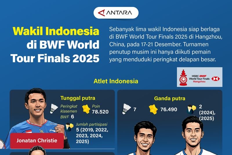 Sebanyak lima wakil Indonesia siap berlaga di BWF World Tour Finals 2025 di Hangzhou, China, pada 17-21 Desember. ….